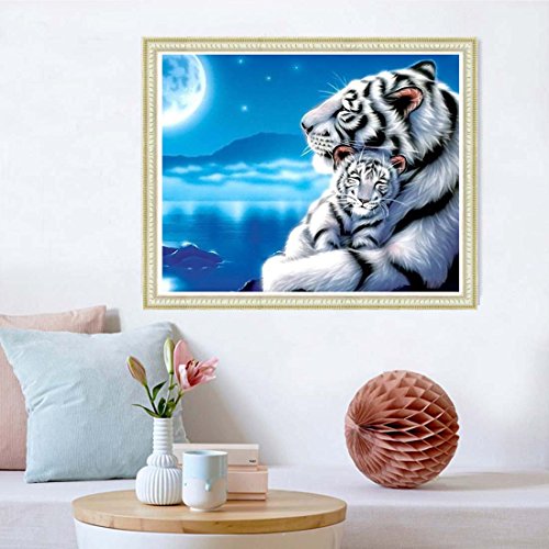21secret 5D Diamond Diy Painting Full Drill Handmade White Tiger Mother Child Under Moonlight Starry Sky Cross Stitch Home Decor Embroidery Kit