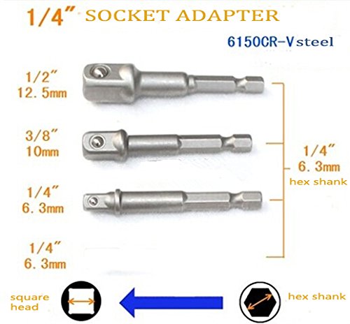 Atoplee 3 Sizes Socket Adapter Set Hex Shank to 1/4" 3/8" 1/2" Impact Driver Drill BIts