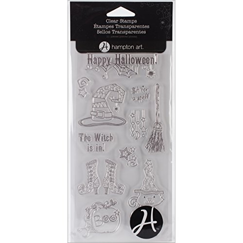 -. Feature : Hampton Art-Outlines Clear Stamp Set / This set features a variety of fun designs, that will add that extra touch to your holiday projects / This package contains The Witch Is In: a set of eleven clear stamps on one 8x4 inch backing sheet / It is an imported item