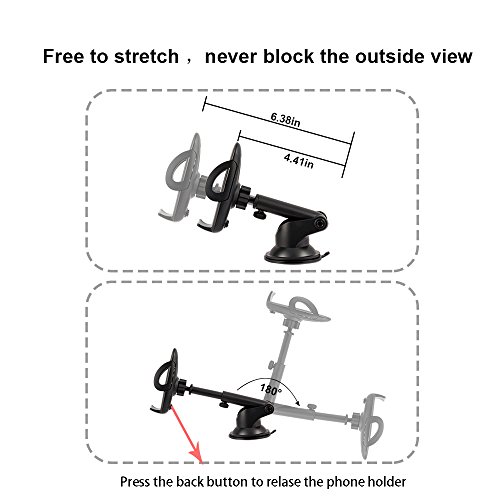 Chesmart Car phone Mount Holder,Cradles Universal Windshield & Dashboard Car Phone Holder with Flexible Support iPhone, Samsung Galaxyand All phones 3.5"-6"