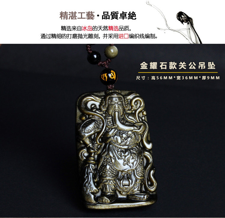 天然黑曜石关公吊坠