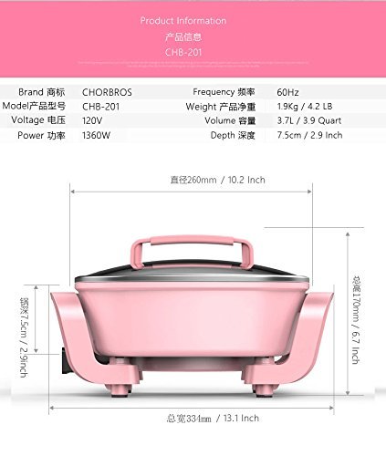 CHB-201 An advanced Electric Hot Pot Produced by CH Brothers USA LLC,is multifunctional cooking appliance.This product we used non-stick material coating,bake grill stew non-stick pot,safe,healthy,environment and also easy to clean; fashionable appearance design,make the products look generous and beautiful,save electric and time,is a modern family kitchen essential appliance. Product Features: