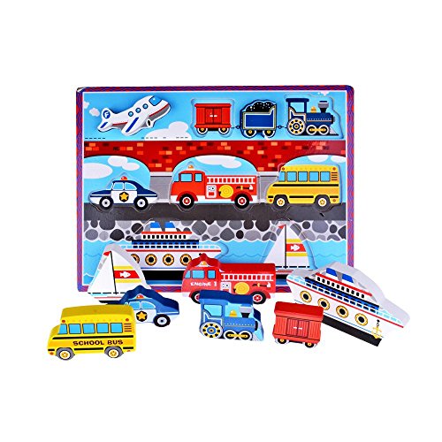 -. Binding : Toy -. Brand : Rolimate -. EAN : 0736950391270 -. Feature : 9-piece wooden puzzle with "things that go" theme / Thick puzzle pieces are easy for small hands to grasp / 2 ways to play: Place pieces in the puzzle board or stand them up for pretend play / Pictures under pieces / Promotes fine motor skills, hand-eye coordination, matching, and problem solving -. IsAdultProduct : 0 -. Label : Rolimate -. Manufacturer : Rolimate -. ProductGroup : Toy -. ProductTypeName : TOYS_AND_GAMES -. Publisher : Rolimate -. Studio : Rolimate -. Title : Rolimate Deluxe Vehicle Wooden Chunky Puzzle -. UPC : 736950391270