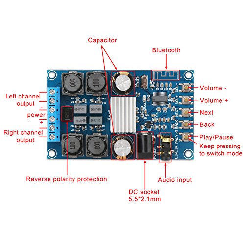 DROK Digital Amplifier Wireless Bluetooth 3.0/4.0/4.1 Audio Amp Board Headphone 2 Channel 50W+50W Small Amplifier Module with Protective Shell