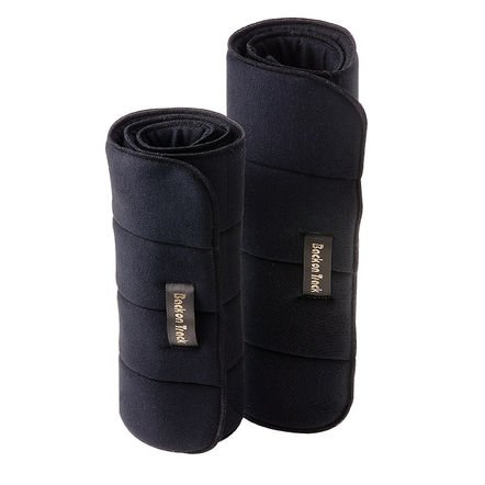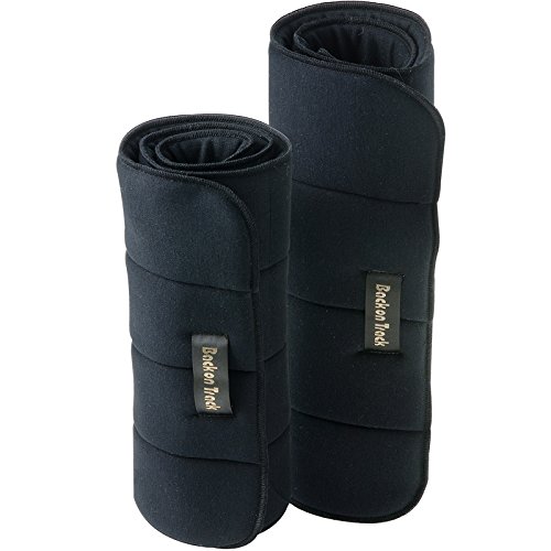 Studio : Back On Track Publisher : Back On Track Binding : Misc. Product Description Back On Track Therapeutic No Bow Leg WrapsThese No Bow Leg Wraps are a cotton/polyester blend material of the state-of-the-art Welltex fabric infused with ceramic powder. The ceramic reflects your horse's natural body heat and creates a soothing far infrared thermal warmth. Warmth therapy is a well-recognized method used to relieve and heal injured muscles, joints, and tendons. This gentle warmth may help decrease swelling and soften or completely reduce wind puffs without the use of liniment or poultice. Use the No Bow Leg Wraps with standing bandages after a strenuous ride and leave them on overnight. You can also use them when you ship your horse.Machine wash up to 86 F or 30 C. Use normal detergents that do not contain bleach or fabric softeners. Air dry only, do not tumble dry.Sold as a pair.Color: BlackSizes: 12", 14", 16" 0