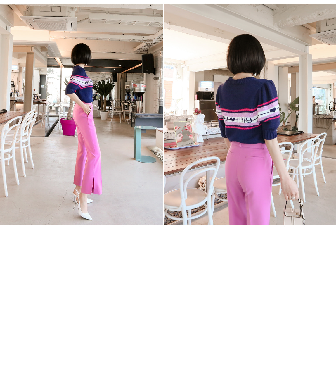 ショルダー・パフとセンターライン配色にトレンディ、