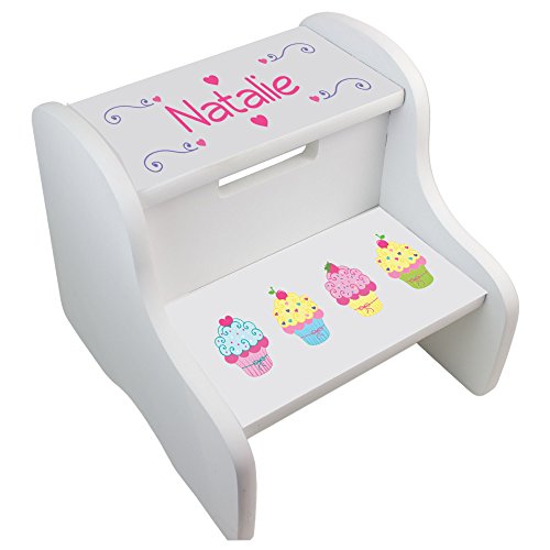 -. Title : Personalized Cupcakes White Two Step Stool