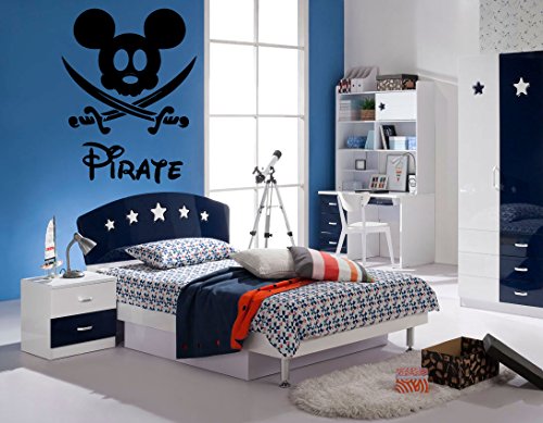 -. Title : Wall Decal Sticker Bedroom Micky Mouse Pirate Flag Scull Dagger Hat Kids Girls Boys Teenager Room 452b