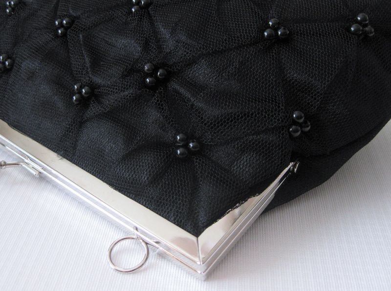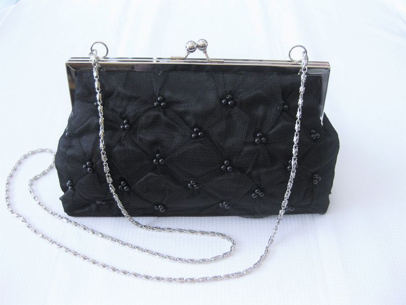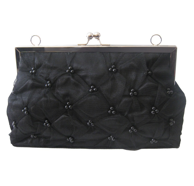 前面にあしらわれたビーズがお洒落な2WAYクラッチバッグです。
