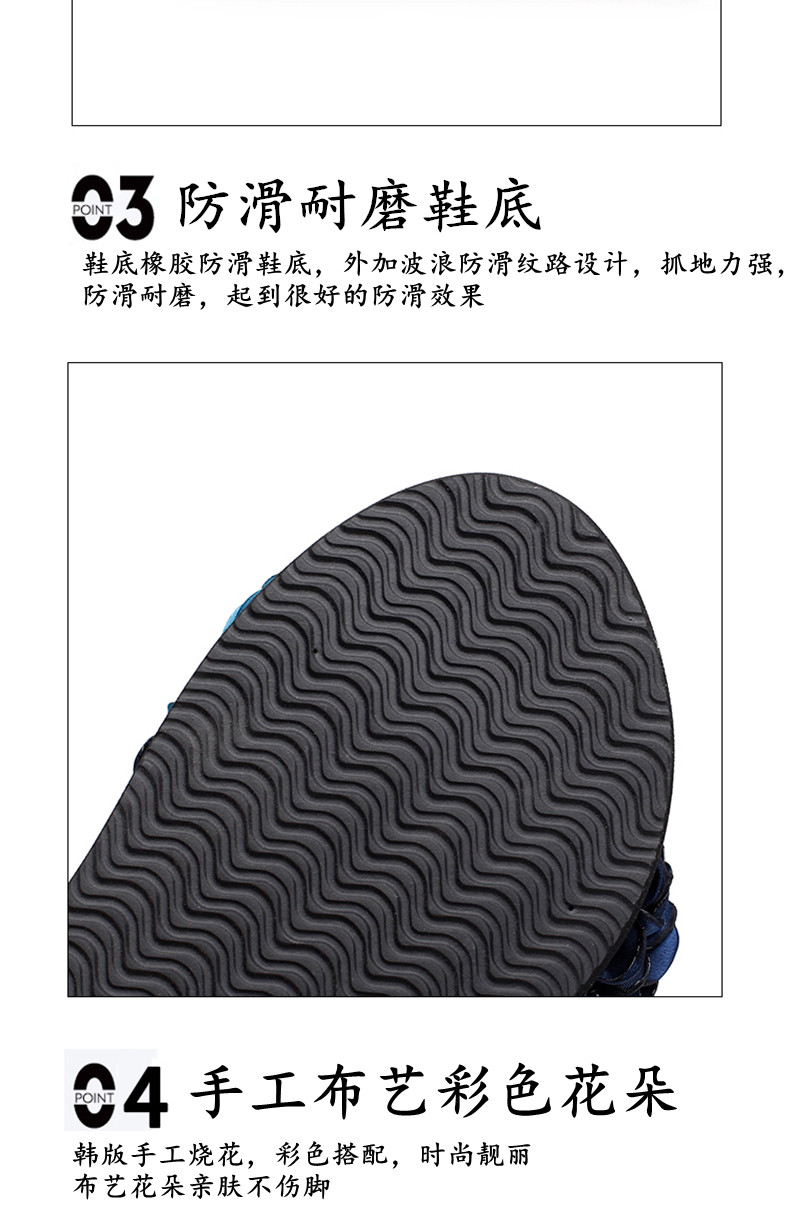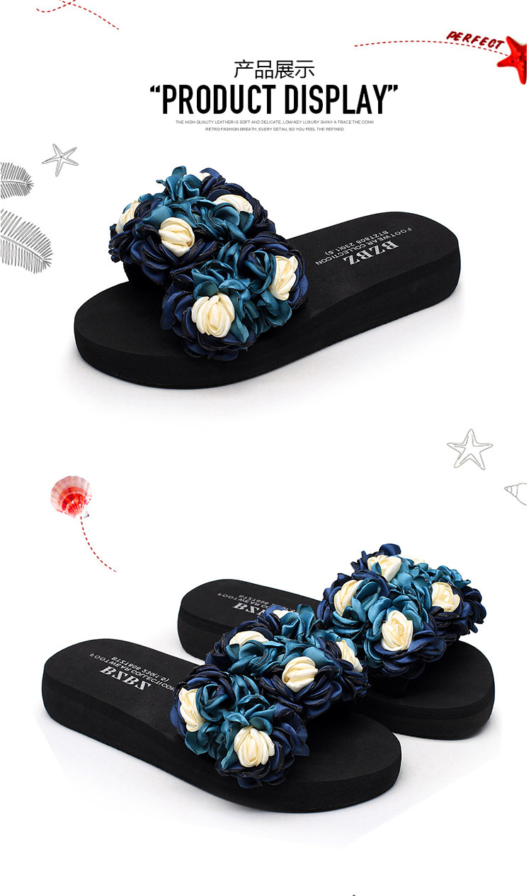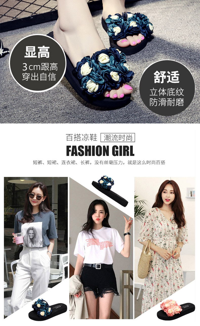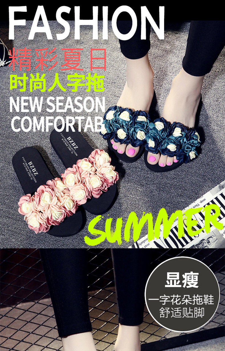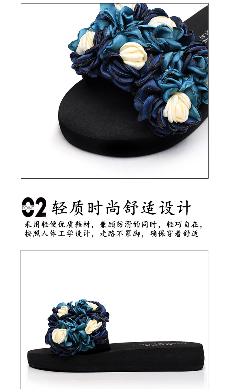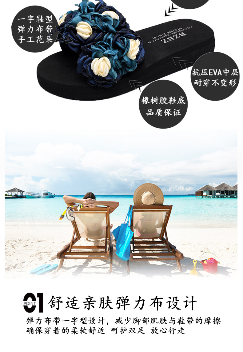 手工防滑厚底凉拖鞋平底沙滩鞋韩版时尚民族风花朵一字拖鞋女夏季