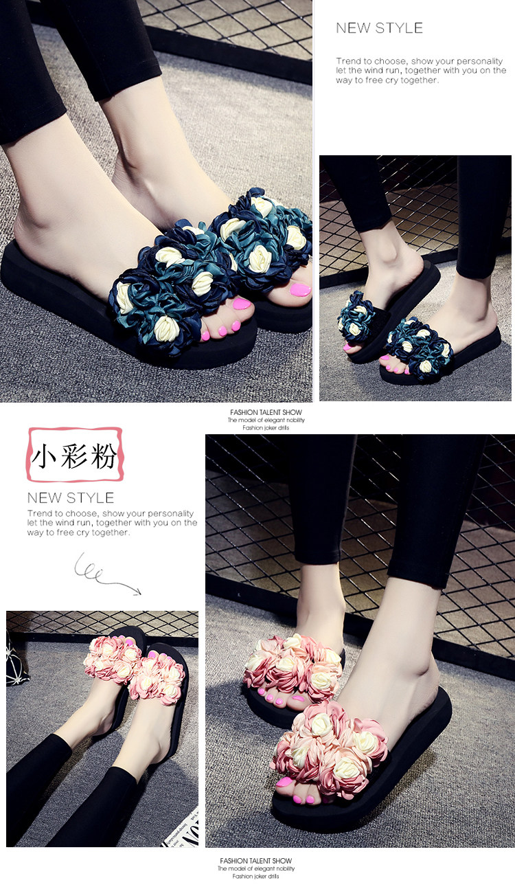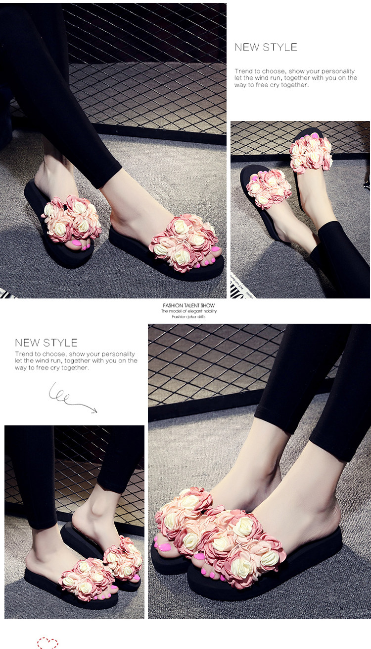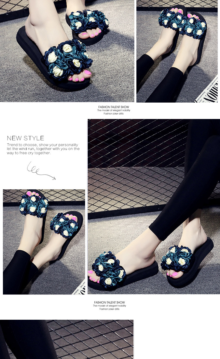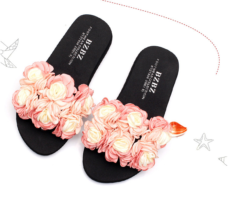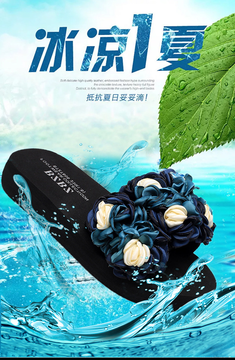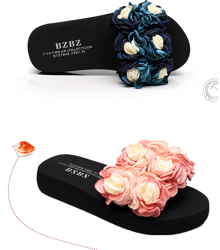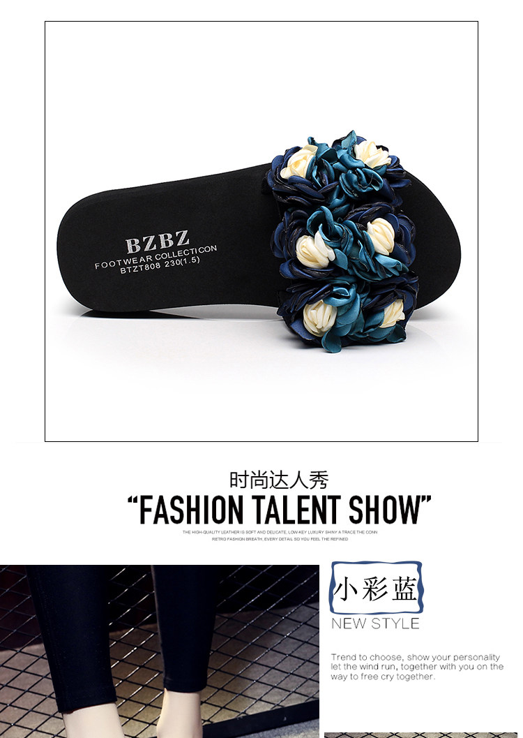 手工防滑厚底凉拖鞋平底沙滩鞋韩版时尚民族风花朵一字拖鞋女夏季