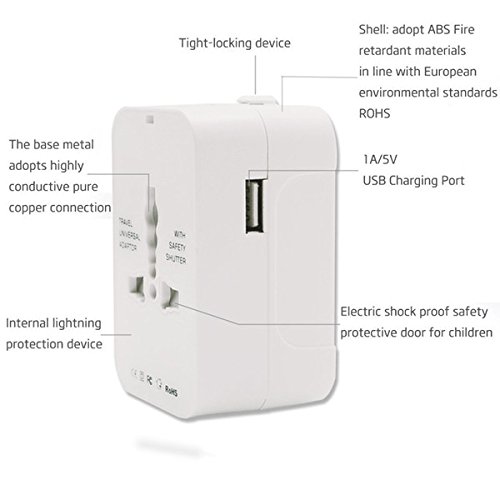 - Universal travel adapter All in one adaptor with surge protector, safety shutter and power indicator light
