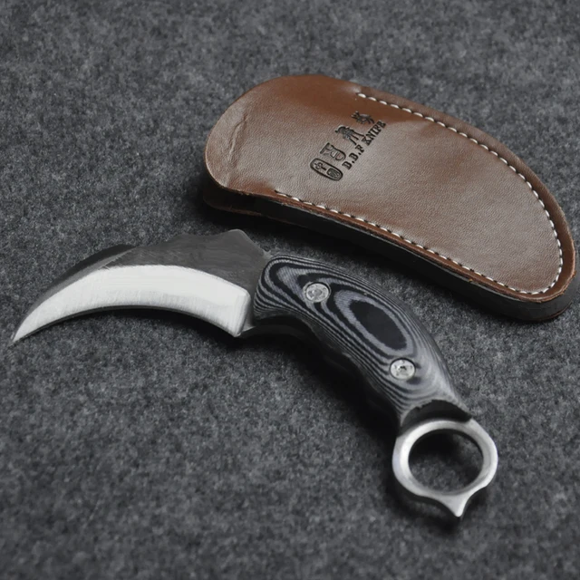 [해외] Woodle 핸들 D2 스틸 사냥 칼 전술 생존 칼 야외 + 가죽 칼집