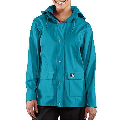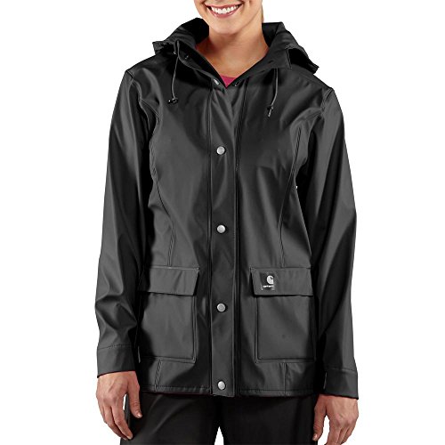 Studio : Carhartt Women's Collection Publisher : Carhartt Women's Collection Binding : Apparel Product Description This jacket is tough enough for you. It features a polyurethane coating to help repel the elements as well as a stretchable fabric for easy movement. The seams are heat sealed to make it both waterproof and wind-resistant. The coat's built with a double-storm placket with snap closure to ensure dryness. An attached three-piece hood with draw-cord and barrel lock adjusters keeps you warm and mesh ventilation in the back yoke assures breathability. There are two front patch pockets with hook-and-loop closures and a right front pocket with a media port. A nice complement to the medford bib overall. 100 percentage polyester knit polyurethane coating waterproof and wind-resistant double-storm placket 0