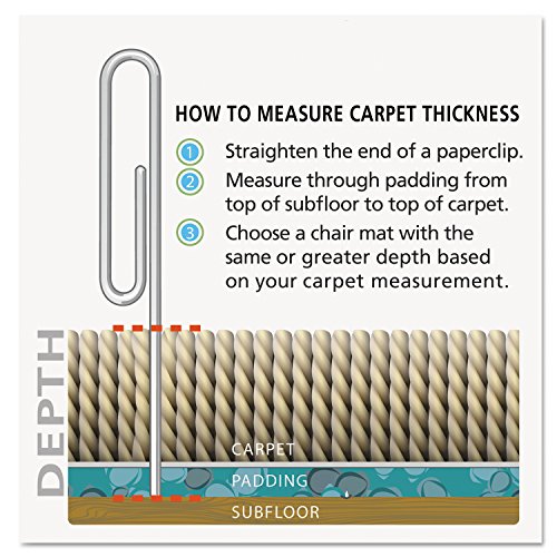 -. Binding : Office Product -. Brand : ES Robbins -. Color : Clear -. EAN : 0012544227553 -. Feature : For carpets up to 3/4" thick including padding / All day support for everyday office use / Features Anchor Bar chair mat cleats that hold firmly in place, yet are gentle on carpet and fingers -. Label : ES Robbins -. Manufacturer : ES Robbins -. Model : ESR122775 -. MPN : ESR122775 -. NumberOfItems : 1 -. PackageQuantity : 1 -. PartNumber : ESR122775 -. ProductGroup : Office Product -. ProductTypeName : OFFICE_PRODUCTS -. PublicationDate : 2015-03-30 -. Publisher : ES Robbins -. Studio : ES Robbins -. Title : ES Robbins Ever life Chair Mats, L-Workstation with Lip, 66" x 60", Clear (ESR122775) -. UPC : 012544227553 -. Warranty : Manufacturer's limited lifetime "No Crack Mat" warranty.