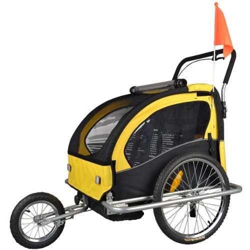 - Title : Veelar Children Double Bicycle Trailer Jogging Stroller Combo 2 in 1 Yellow/BlACK 50204