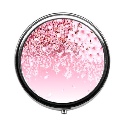 Cherry blossom background pill box/pill case----Round pill box/case--- Three-compartment pill box/pill case