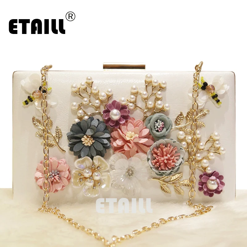 Features 2:Appliques pattern flowers wedding dinner bags day clutches bags