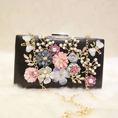 Features 3:evening bags new the chain the Appliques pattern flowers