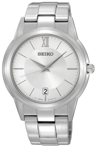 Seiko 남성용 시계.실버 스테인레스 케이스 와 실버 스테인레스 스트랩.실버 다이얼.쿼츠 동작.양쪽으로 열림 원 푸쉬타입잠그개.방수 가공 50 미터.