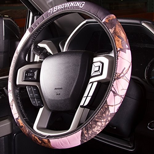 Simple, stretchy and designed to protect your steering wheel in style, the Browning Pink Camo Neoprene Steering Wheel Cover features Mossy Oak Infinity camouflage with a pink Browning Wordmark logo. This comfortable cover is designed to fit most steering wheels, and also protects your hands against cold and heat.Feature