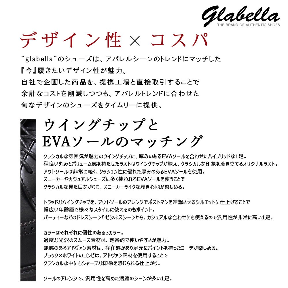 | 商品説明 | ”ウィングチップとEVAソールのマッチング” クラシカルな雰囲気が魅力のウィングチップに、厚みのあるEVAソールを合わせたハイブリッドな1足。 程良い丸みとボリューム感を持たせたラストはウィングチップが映え、 クラシカルな印象を惹き立てるオリジナルラスト。 アウトソールは非常に軽く、クッション性に優れた厚みのあるEVAソールを使用。 スニーカーやカジュアルシューズに多く使われるEVAソールを使うことで、 クラシカルな見た目ながらも、スニーカーライクな履き心地が楽しめる。 トラッドなウイングチップを、アウトソールのアレンジで ポスマンを連想させるシルエットに仕上げることで、 幅広い年齢層で様々なスタイルに使えるのもポイント。 パーティーなどのドレスシーンやビジネスシーンから、 カジュアルな合わせにも使えるので汎用性が非常に高い1足。 |