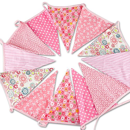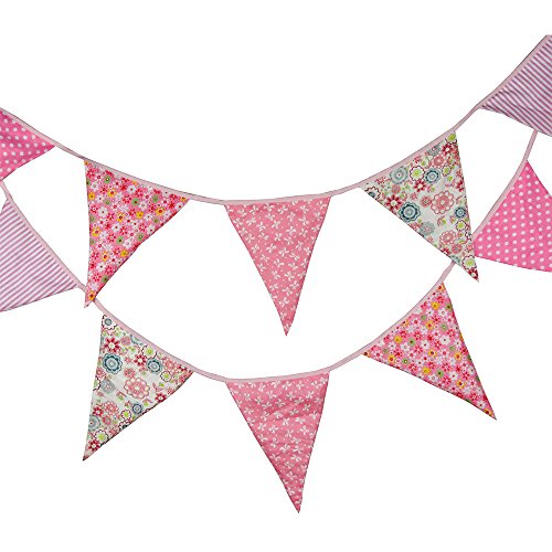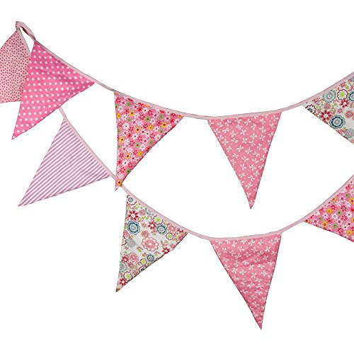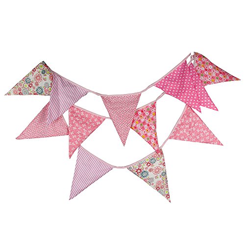 3.7M/12 Feet Extra Large Lovely Bunting Flag Banner Pennant Garland Fabric Triangle Flags Double Sided Vintage Cloth Shabby Chic Decoration for Wedding, Birthday Party, Bedrooms