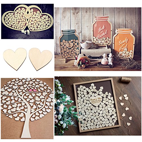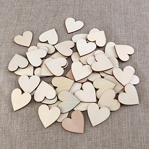 OULII Blank Heart Wood Slices Discs for DIY Crafts Embellishments 40mm,Pack of 100 (Wood Color)