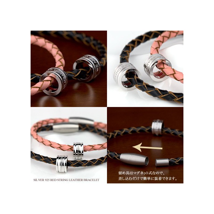 E-보이시야 페어 팔찌 빨간 실 SV925 4개 뜨기 가죽 레더 팔찌 마그넷식 인연 베이비 링
