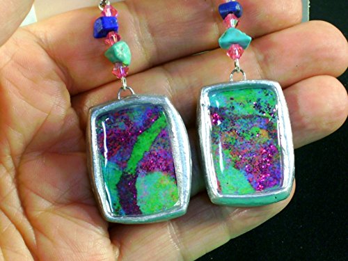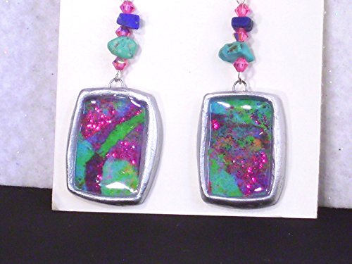 -. Brand : Donutz Studio -. Color : Multi Color -. Department : Women -. ProductGroup : Guild Product -. ProductTypeName : GUILD_JEWELRY -. Title : 1.25" Mod Statement Earrings Turquoise Green Pink Purple Metallic Silvertone Chunky Abstract Modern Art Clay