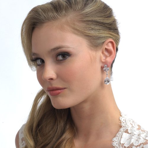-. Title : USABride Cubic Zirconia Floral Crystal Drop CZ Bridal Earrings 1190