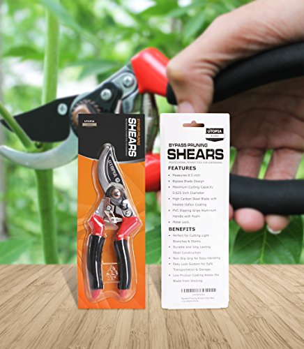 Premium Bypass Pruning Shears - High Carbon Steel Blade - Safety Metal Lock - Aluminum Handles - by Utopia Home