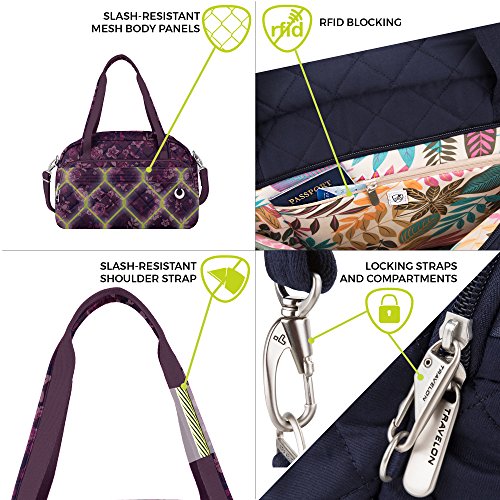 -. Binding : Apparel -. Brand : Travelon -. Color : Multi -. Department : unisex-adult -. Feature : Locking main compartment has zip wall pocket and 2 elasticized side pockets / Zip front organizer compartment has a zippered pocket that is RFID protected / Side pocket holds a water bottle or umbrella / Slash-resistant carry handles and an adjustable, removable shoulder strap / Add-a-bag strap allows tote to slide over handle of wheeled lage -. Label : Travelon -. Manufacturer : Travelon -. PackageQuantity : 1 -. ProductGroup : Apparel -. ProductTypeName : LAGE -. Publisher : Travelon -. Size : One Size -. Studio : Travelon -. Title : Travelon Women's Anti-Theft Boho Weekender