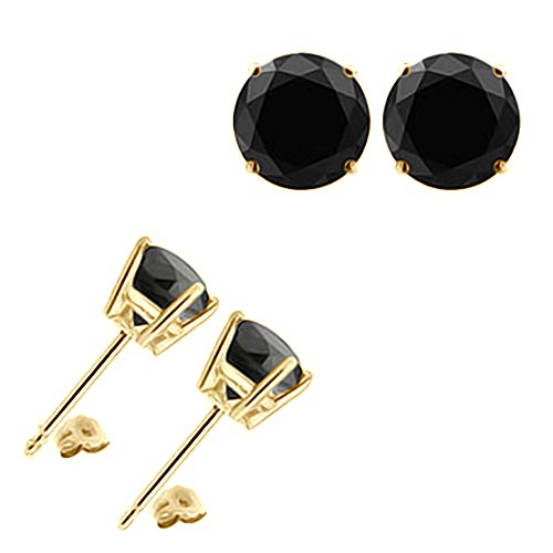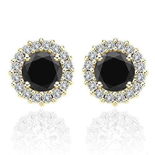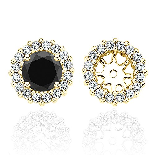 -. Title : 4.00 Carat Black Diamond Flower Solitaire Stud Women Pair Earrings With Halo Jackets 14K Yellow Gold