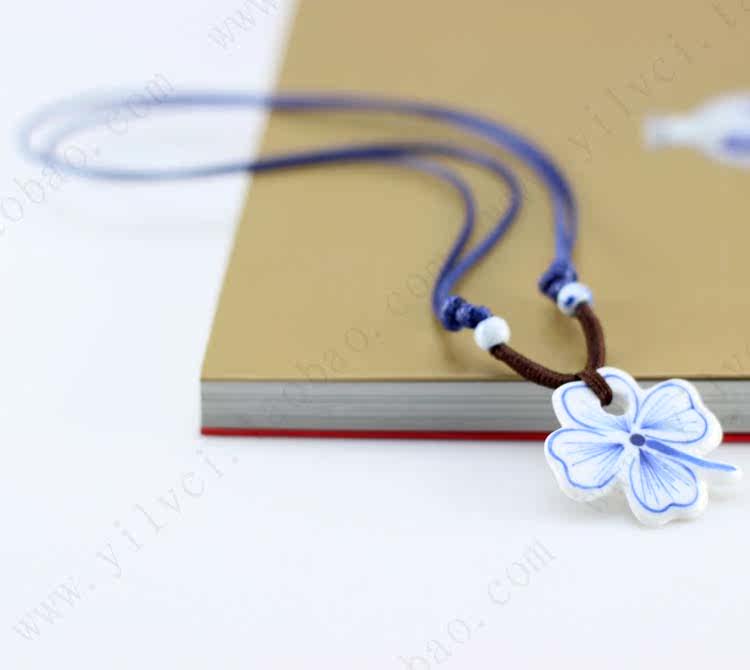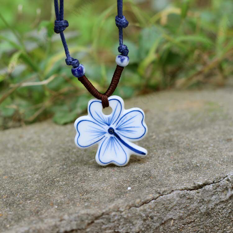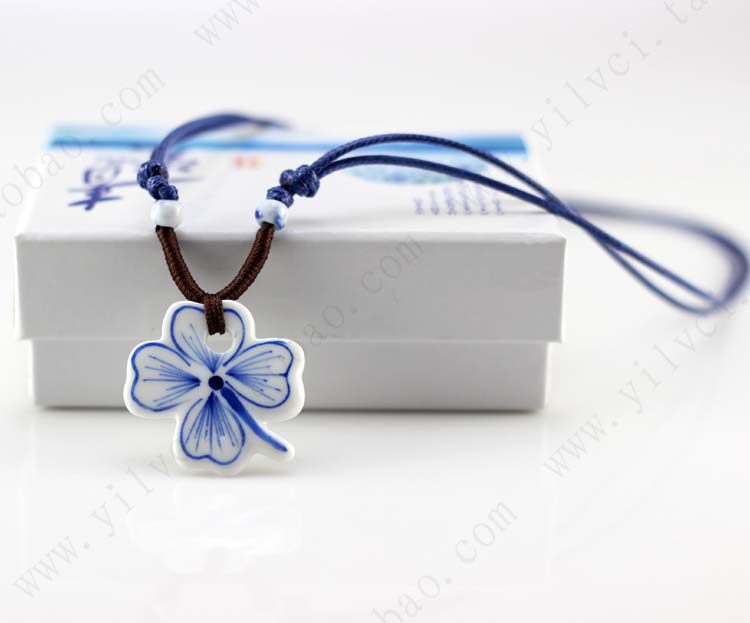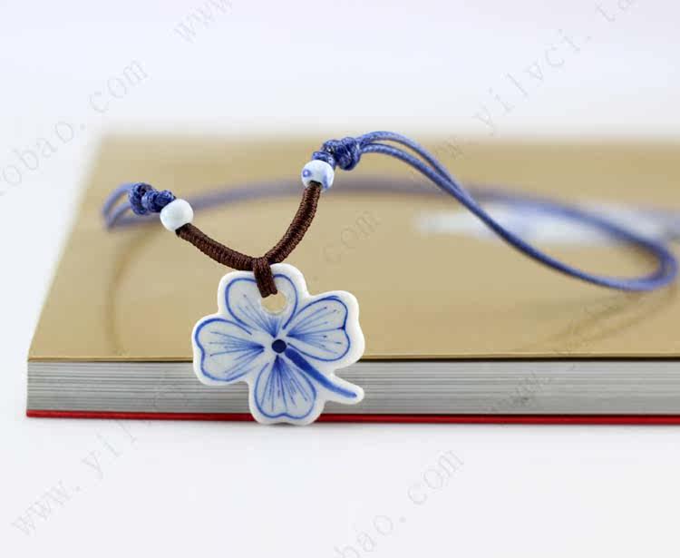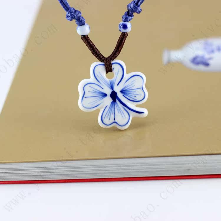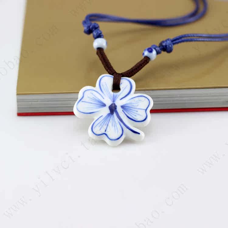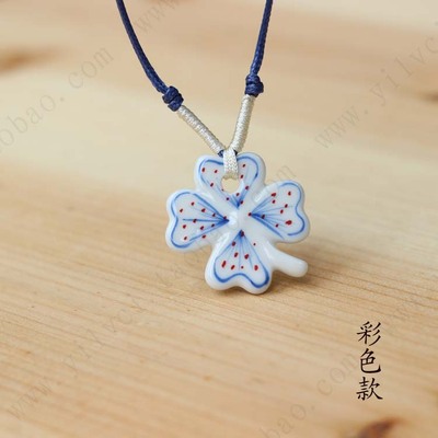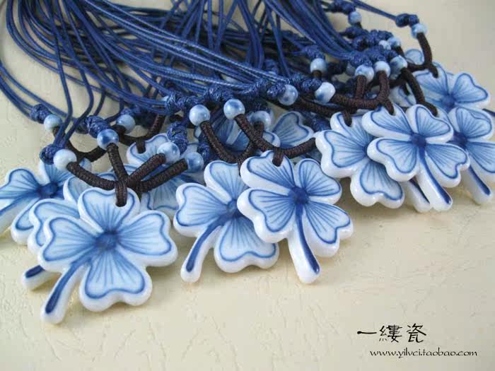 [Clover] witness of love hand-painted blue and white Jingdezhen porcelain jewelry pendant necklace jewelry