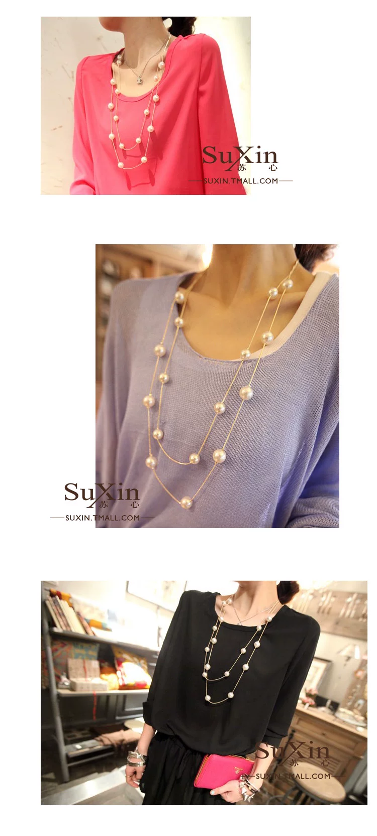 苏心高档时尚百搭小香风名媛气质双层珍珠韩版配饰长款毛衣项链女   苏心高档时尚百搭小香风名媛气质双层珍珠韩版配饰长款毛衣项链女