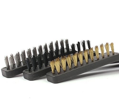- *Mini Wire Brush Set: Package includes 4 pieces nylon wire brushes (7 inch & 9 inch, 2 pieces each), 4 pieces brass wire brushes (7 inch & 9 inch, 2 pieces each) and 4 pieces stainless steel wire brushes (7 inch & 9 inch, 2 pieces each). 3 different material wire brushes cover a wide variety of surfaces and applications, meeting your different using needs.