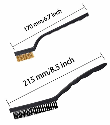 - *Easy to Hand: 9 inch wire brush handle length is 12 cm/ 4.7 inches, the brush head length is approx. 9.5 cm/ 3.7 inches, and the brush head width is 2 cm/ 0.8 inch. 7 inch brush handle length is 13 cm/ 5.1 inches, the brush head length is approx. 4 cm/ 1.6 inches, and the brush head width is 1 cm/ 0.4 inch. With comfortable and durable plastic handles and convex groove on the inside handle, convenient for you to hold and control.