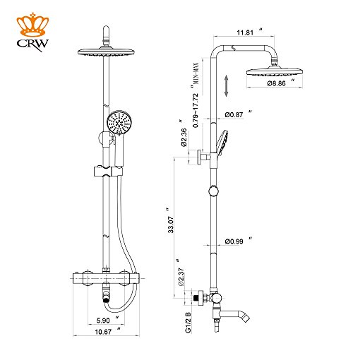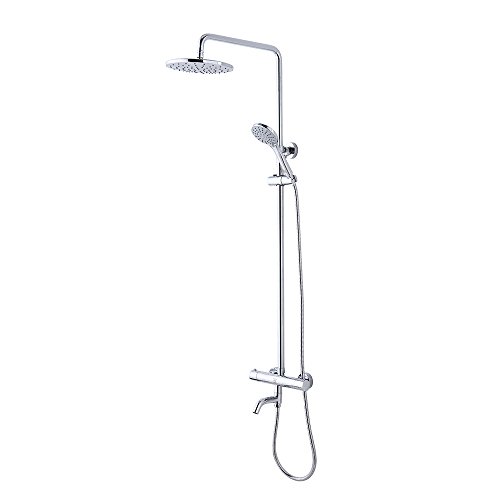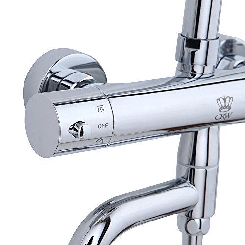 CRW Thermostatic Rain Shower System Mixer Faucet Sets Triple Function Chrome with Adjustable Slide Bar Shower Head G10CU1