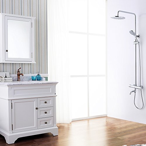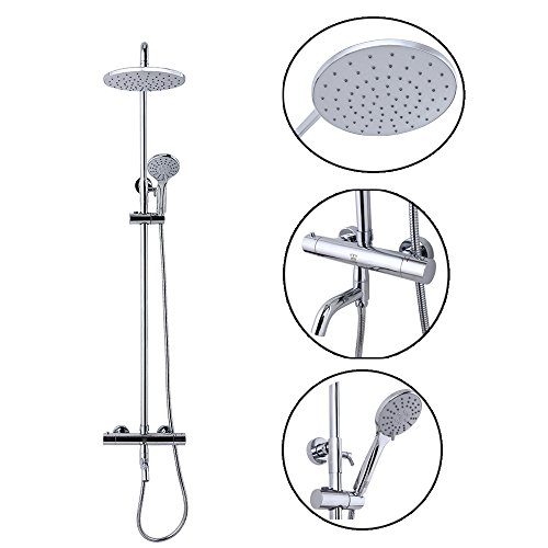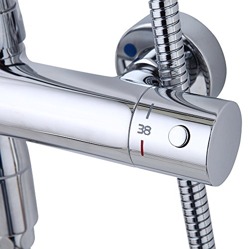 - 2.THERMOSTATIC CONTROL with safe temperature control at 100 degree F / 38 degree . Enjoy your shower without worrying about water suddenly getting cold or hot when others flush the toilet.
