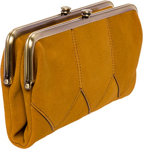 Seamlessly mixing style and function, this Lauren Vintage Leather Clutch Wallet by Hobo transitions perfectly from day to night! This fully lined clutch is made from top-grain suede for a funky, vintage look. The interior of this clutch contains 3 card slots, 1 clear ID window, and 1 roomy zippered pocket. One clasp compartment includes 2 bill compartments and 6 card slots. The other clasp compartment contains a zip pocket and space for a smartphone. The abundance of functionality compartments guarantees that you'll never be without your essentials! This accessory secures with a strong hidden magnet closure. Measures 8.5" x 4.5" x 1", folds out to 9.25" wide.Feature