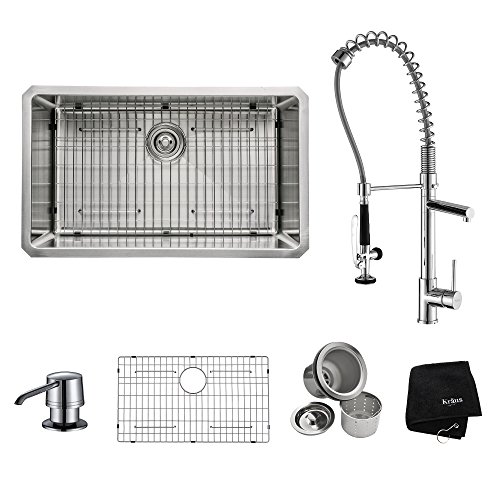 Kraus KHU100-30-KPF1602-KSD30CH 30 inch Undermount Single Bowl Stainless Steel Kitchen Sink with Chrome Kitchen Faucet and Soap Dispenser