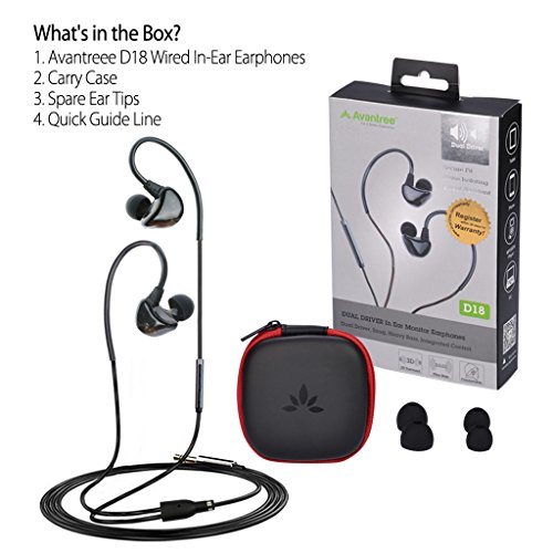 Avantree Dual Driver High Definition In Ear Monitor Headphones with Microphone and Volume Control & Music Track, Heavy Bass, Sports Earbuds Earphones [2 Year Warranty]