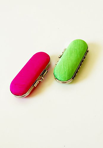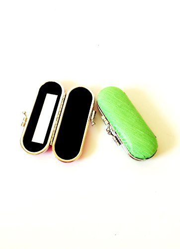 Lipstick Case Holder Box With Mirror 2pcs, Green Rose Satin Silky Fabric Plain Gorgeous Design Valentine Day's Gift