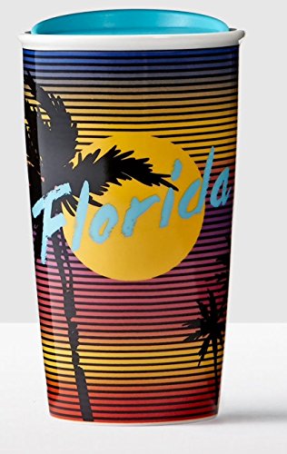 - A double-walled ceramic travel cup celebrating the Sunshine State with vintage-style sunset art.