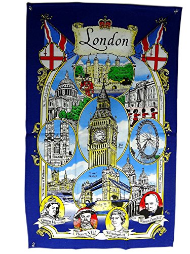 Tea Towel / Wall Hang with London Big Ben and Landmarks with Famous People Faces, London Souvenir