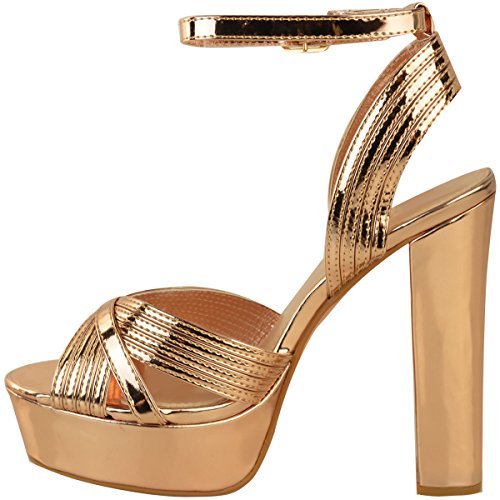 (Fashion Thirsty)/Women's/Sandals/DIRECT FROM USA/Fashion Thirsty Womens Block High Heel Platforms Sandals Party Rose Gold Black Size