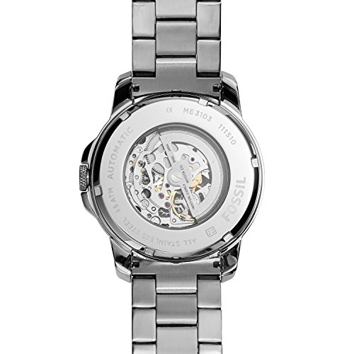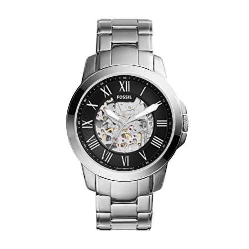 This men's Fossil Grant watch is made from stainless steel and is fitted with a quartz movement. It fastens a silver metal bracelet and has a skeleton dial.