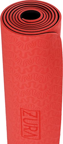 ZuraYoga Nonslip Travel Yoga Mat, Best Reversible 2-in-1 Eco-Friendly Yoga Mat - Lightweight Exercise Mat, 5 mm Thick (Red Black)
