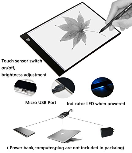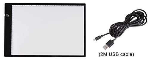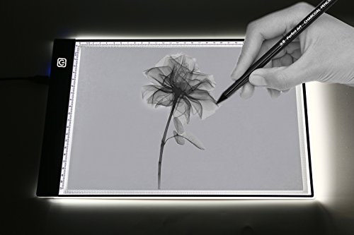 A4 Ultra-thin Portable LED Light Box Tracer USB Power Cable Dimmable Brightness Artcraft Tracing Light Pad Light Box w Two Way Ruler forArtists Drawing Sketching Animation Designing Stencilling